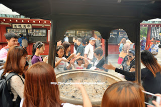 Asakusa ist ein recht quiriliges und traditionelles Viertel. Durch den Senso-ji und die Nakamise-Dori ist es zwar sehr touristisch, aber auch viele Japaner gehen dort ihrem Alltagsleben nach bzw sie flanieren in traditionellen Kimonos zum Schrein. Vom Bahnhof Asakusa ist man schnell dort und wir betraten den Tempelbezirk über das Kaminari-mon, das Eingangtor mit der gigantischen Papierlaterne. Direkt dahinter beginnt die Nakamise-dori. Es ist eine kleine Einkaufsstraße wo es viel Souvenirkram gibt, aber auch diverse Snackstände. Die Atmosphäre ist sehr betriebsam und es war bei unseren zwei Besuchen dort, immer voll. Am Ende der Nakamise erreicht man dein eigentlichen Tempelbereich. Man geht wieder durch ein mächtiges Tor und vor einem zeigt sich der Haupttempel Kannon-do. Links davon erhebt sich noch die Goju-no-To Pagode, aber der Tempel stielt allem die Schau. Dennoch lohnt sich ein Rundblick. In der Ferne erkennt man den Skytree und auch die anderen Heiligtümer und Tore geben ein schönes Bild ab. Menschen nutzen dort die Gelegenheit ihre Wünsche und Alltagssorgen den Göttern mitzuteilen und hoffen natürlich auf ein positives Resultat.