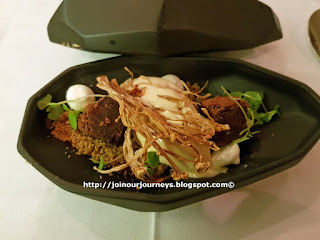 Drinnen herrschte vornehme Zurückhaltung und man führte uns, nachdem wir uns vorgestellt hatten, an unseren Tisch... in der Küche. Ja, wir wurden darauf aufmerksam gemacht, dass sich der Chefs Table in der Küche befindet und wir den Köchen bei ihrem täglichen Werk zuschauen könnten. Wir wurden vom Chefkoch begrüßt (der Meister selbst war nicht zugegen) und bekamen eine kurze Erklärung was wo passierte. An dem pultartigen Tisch saßen wir direkt bei den Patissiéren, hatten aber auch Bildschirme mit wechselnden Aufnahmen der anderen Bereiche. So konnten wir live verfolgen was gerade passierte. Fragen und Fotos waren gestattet und so begann eine andere, aber aufregende Reise in die Welt der Gourmetküche. Es war ein unglaubliches Erlebnis. Live in einer der besten Küchen des Landes zu sitzen, den Spitzenköchen bei der Arbeit zuzusehen, und abwechselnd ein Highlight nach dem anderen serviert zu bekommen, war sensationell. Interessant dabei war zu erleben, wie ruhig und abgeklärt alles zuging. Es hatte jedenfalls nichts mit den TV Küchen zu tun in denen Hektik herrscht und rumgebrüllt wird. Irgendwann trauten wir uns auch mal mit den Köchen zu sprechen, als der Abend schon etwas fortgeschritten war und mehr Ruhe einkehrte. Gerne gab man uns Auskunft über das Tun und so bekamen wir einen kleinen Einblick in eine Küche in der wir kein Messer sahen, dafür aber Pipette und Pinzette oft Anwendung fanden. Die Rechnung holte uns dann von der 14 gängigen Reise wieder heim und ich musste wieder an den Obdachlosen zu Beginn denken, der mit dem Betrag sicher einen Monat hätte bestreiten können. Aber ansonsten war es geschmacklich und künstlerisch eines der besten Menüs, die wir je gegessen haben.